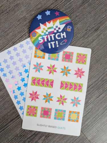 Stitch It! Quilt Along Button + Sticker Pack