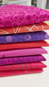 The I Love You Berry Much Fat Quarter Bundle is a rich, vibrant mix of magentas, raspberries, and violets — a playful yet dramatic color palette that’s perfect for quilts with personality and punch.