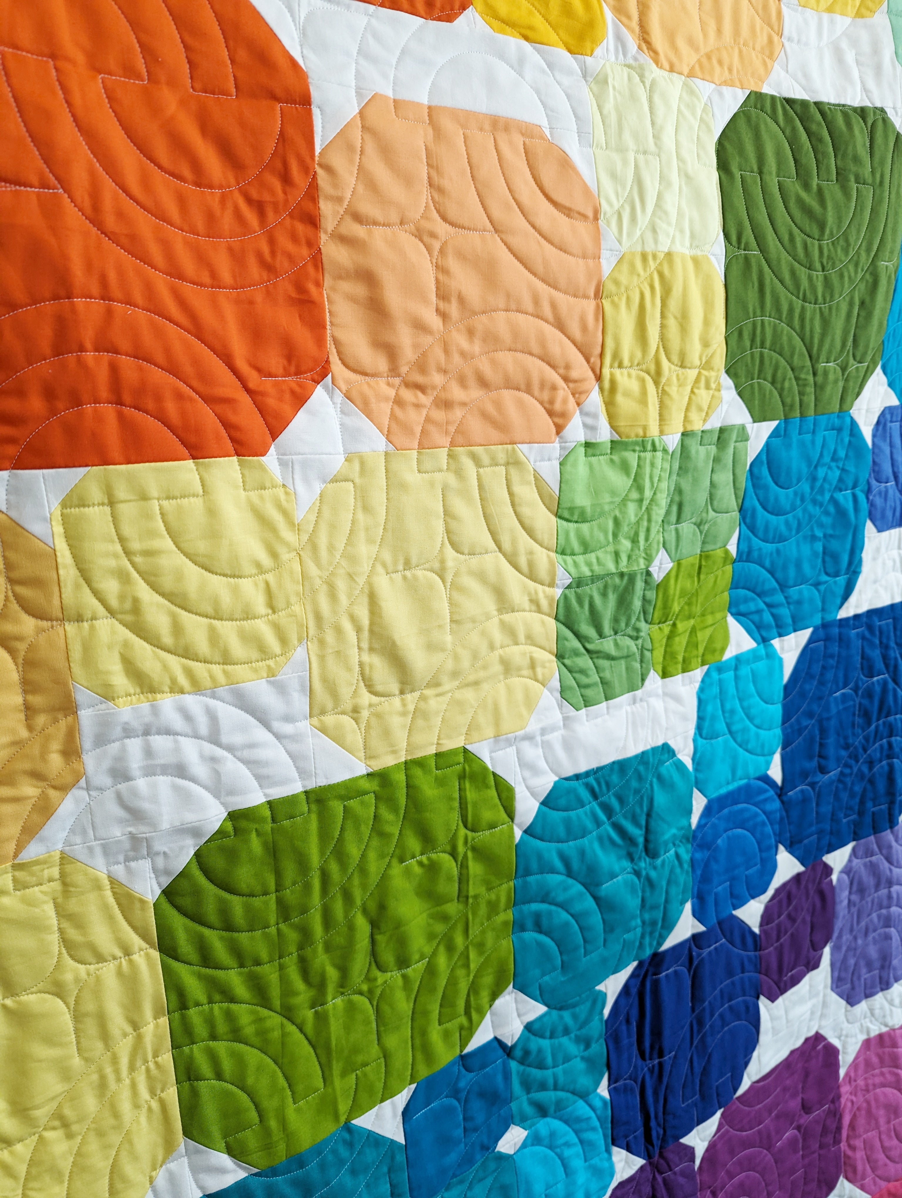 The Pom Pom Quilt Pattern is the perfect project for quilters looking to turn their fabric scraps into something cheerful and modern. This quick and easy pattern features playful circles (or "poms") that create a dynamic, eye-catching design. It’s the ultimate scrap-friendly pattern, giving new life to leftover fabrics while producing a quilt that’s full of energy and style.