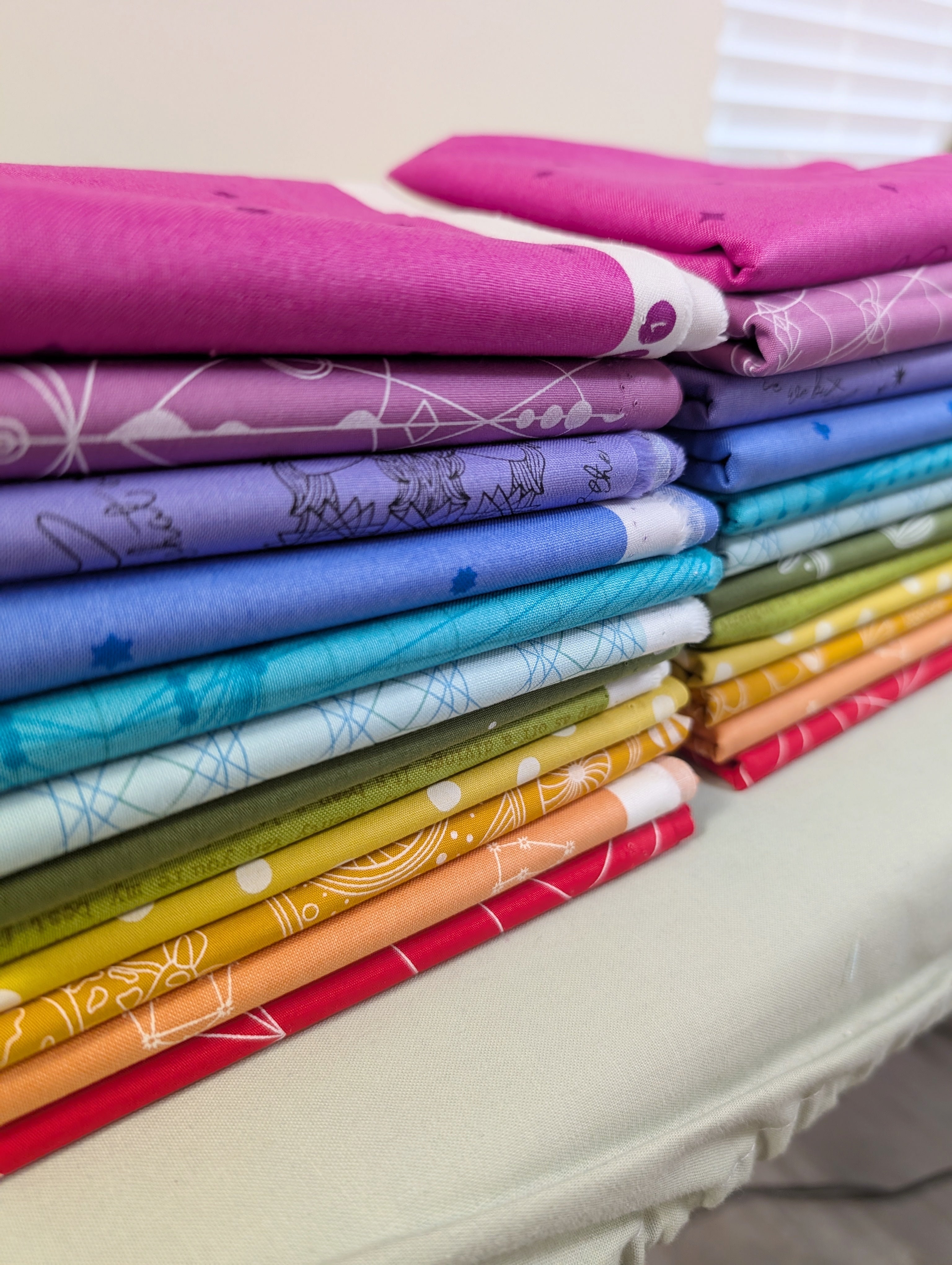 The Rainbow Remix Fat Quarter Bundle is a joyful mix of bright, modern colors spanning the full spectrum. This bundle is all about movement, contrast, and fun — perfect for quilts that celebrate color and creativity.
